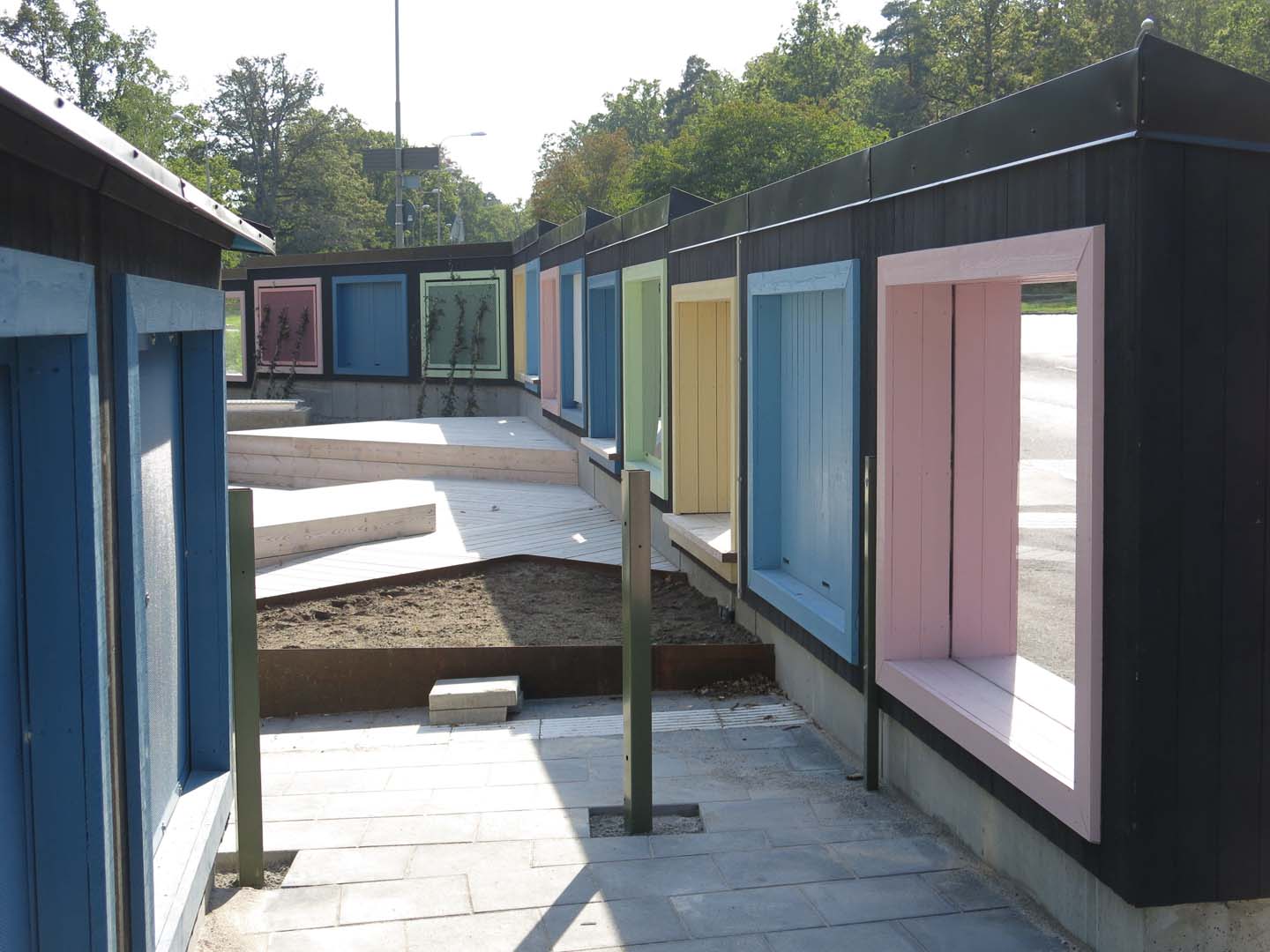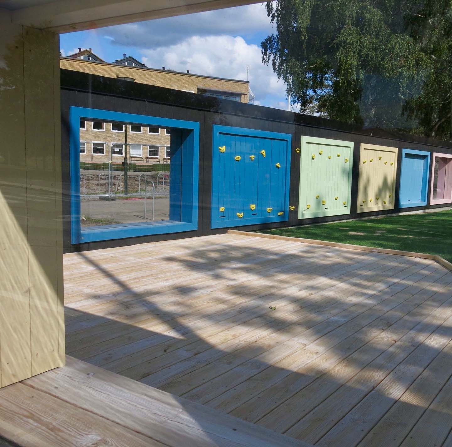 Skolor i tätbebyggda områden med trafikerade vägar runt om kan ”ramas” in med trevliga aktivitetsplank ex. Ekängens Skola i Älvsjö, Stockholm som visas på bilderna