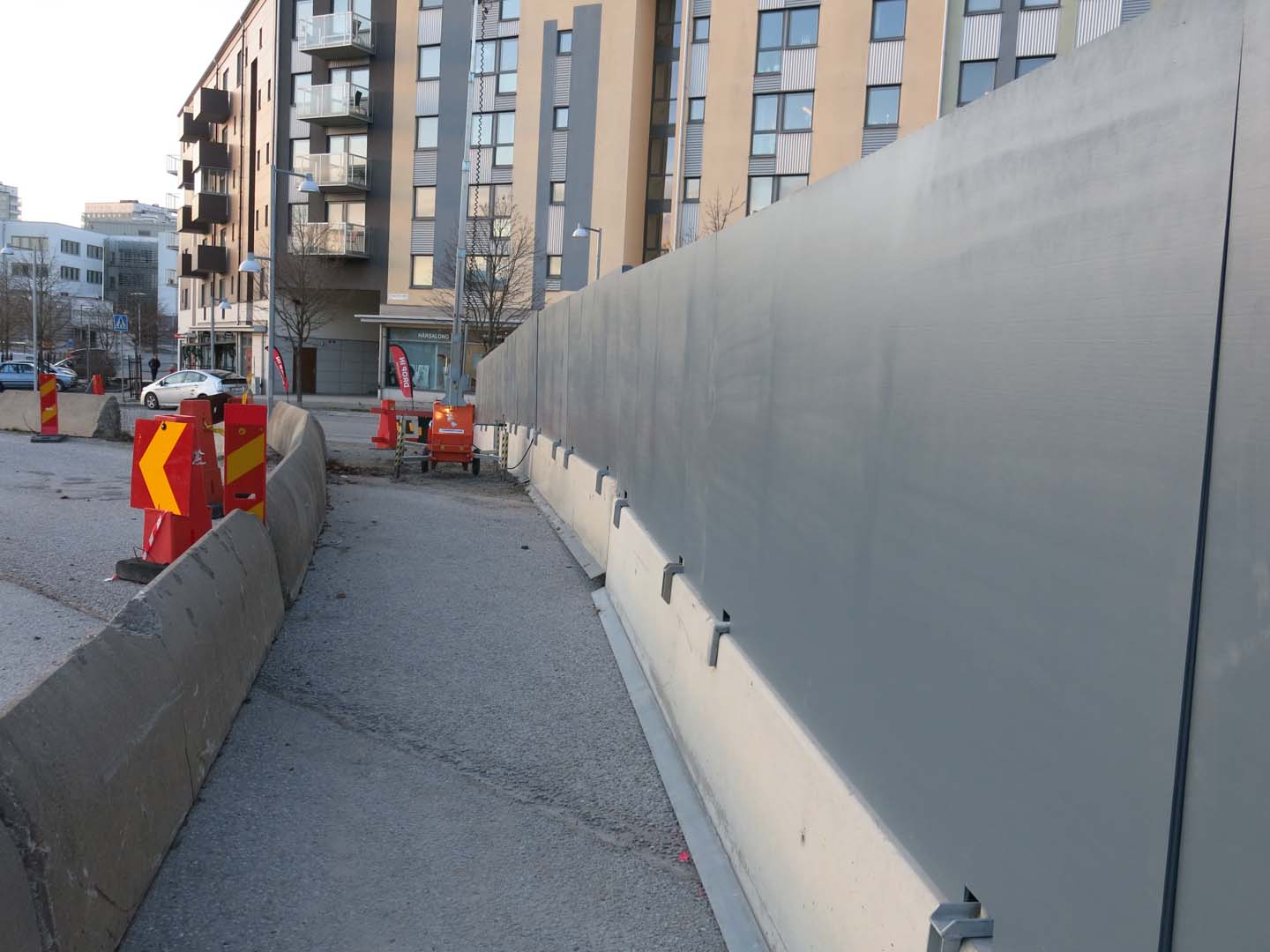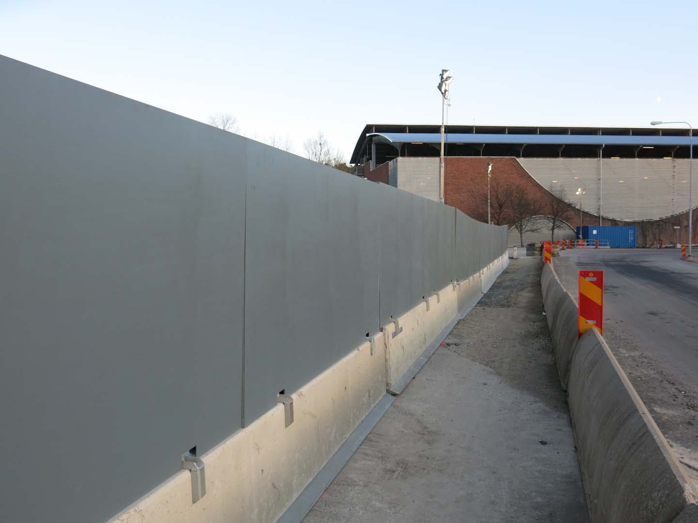 Insynsskyddet/bullerplanket är tillverkat av glasfiberarmerad plast (GRP) med riktade fibrer för att uppnå maximal styrka och hållbarhet.