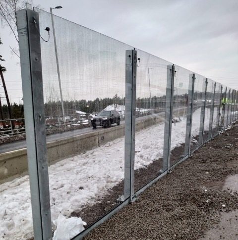 Våra bullerskärmar i polykarbonat kombinerar effektiv ljudisolering med ett modernt, ljusöppet uttryck. Tjockleken anpassas efter projektets förutsättningar men är vanligtvis 12 eller 15 mm. Polykarbonat klarar utsatta miljöer längs vägar och järnvägar och är näst intill underhållsfria.